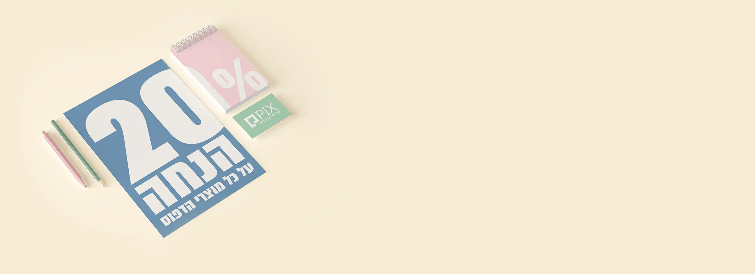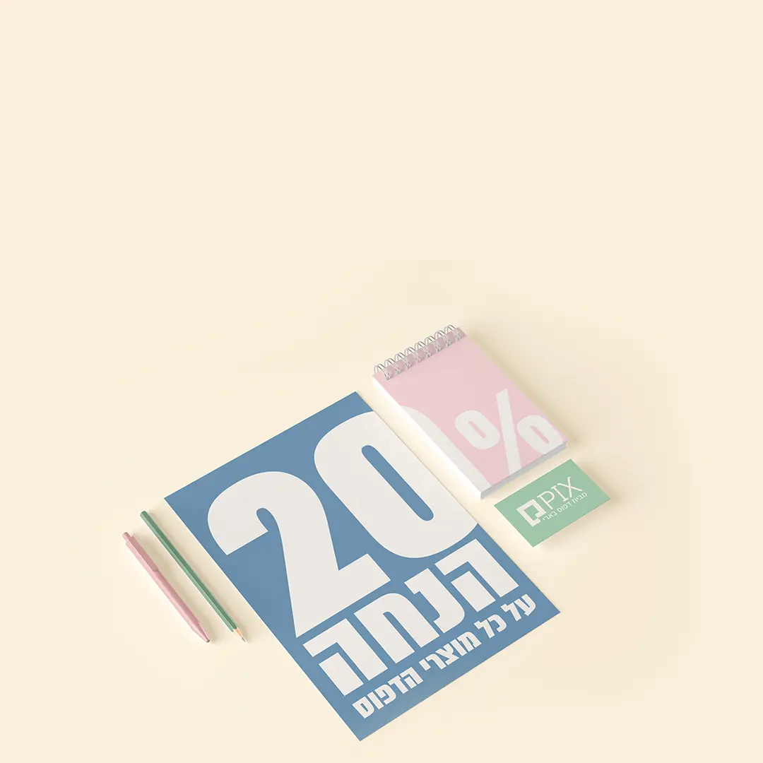 20% הנחה על כל מוצרי הדפוס באתר
